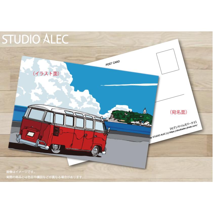 湘南イラスト ポストカード 七里ヶ浜駐車場から江ノ島を見つめるワーゲンバス セブンマイルズ パーク2 Shpc Studio Alec 通販 Yahoo ショッピング